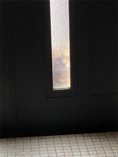 玄関のドアの外で、ノラさんが待ってます。 誰かが出てきて、エサくれるのを待ってます。