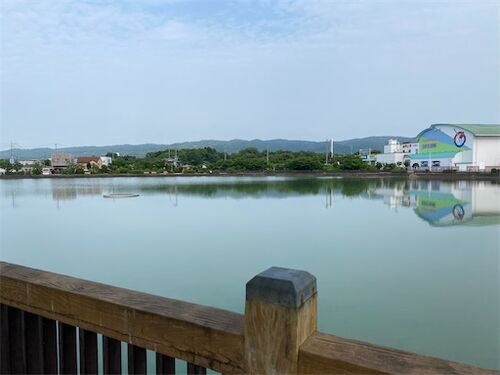 視界がぱっと開けて、池が見える。 九頭上池公園。 池の周りが遊歩道のようになっている。 緑が多く、ベンチもある。 ここでようやく、持ってきてたパンを食べた。