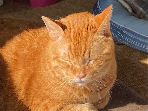 商店街から帰ってきて、ネコタイム。 お日様が当たるのは、この時間だけ。 晴れてる時は、日向ぼっこさせてあげたい。 窓の形にお日様が当たります。