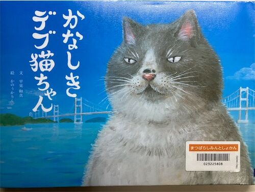 早見和真さん文、かのうかりんさん絵。 捨てネコカフェでアンナちゃんと出会い家ネコになったマルが、家出をして愛媛県を旅する物語。 タオルの町今治や三島公園の四国中央市、夕焼けの田園風景の美しい西条市、ピースのいるとべ動物園の砥部市、古い町並み…